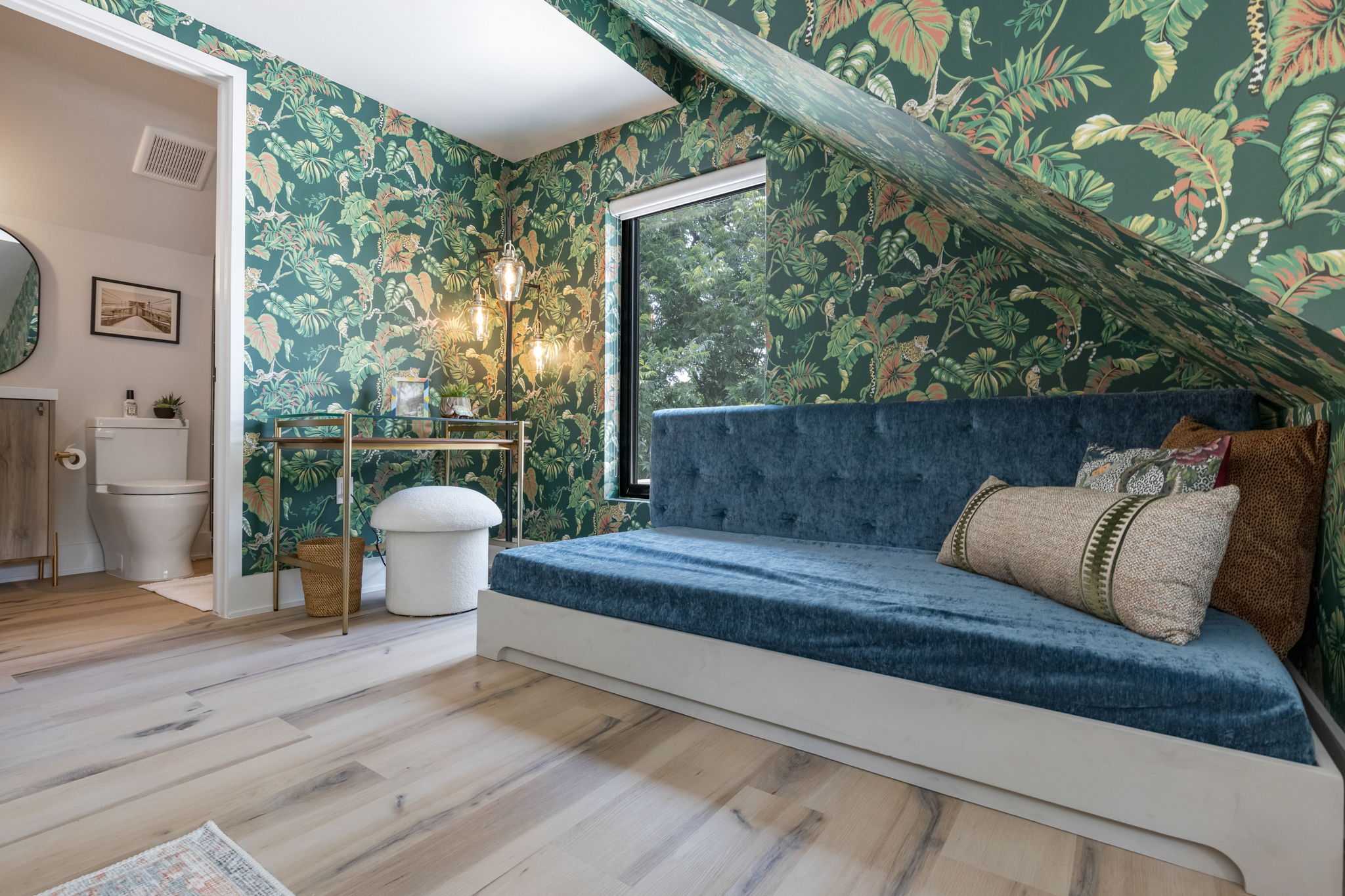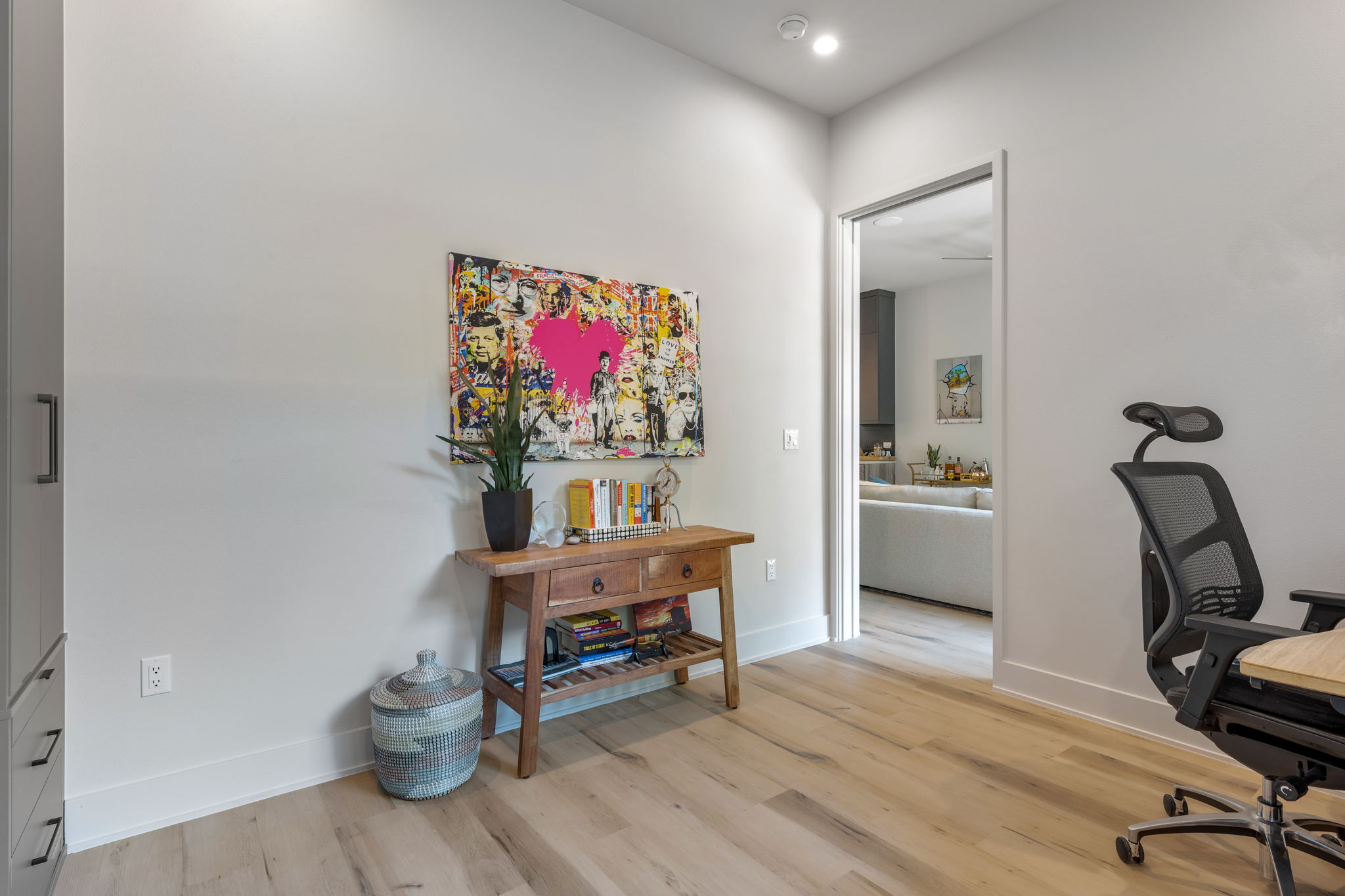 - Bedroom 1: Queen Murphy Bed, Workspace w/ desk & Apple Monitor, Smart TV, Full Bath outside the room